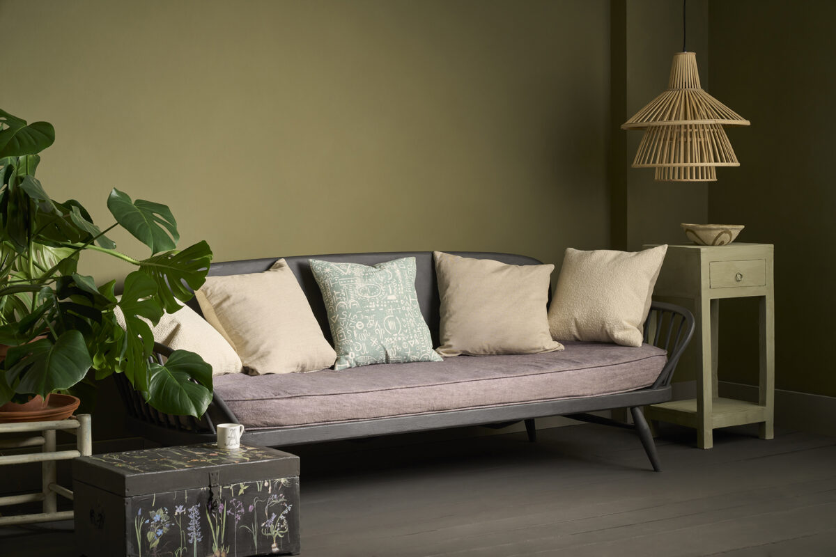 Ta ciemna, tradycyjna zieleń khaki pozwoli stworzyć spokojne i pogodne otoczenie. To ziemisty kolor, który doskonale wygląda w połączeniu z meblami pomalowanymi na różowo i brązowo np. w kolorach Antoinette i Honfleur z palety Annie Sloan.
