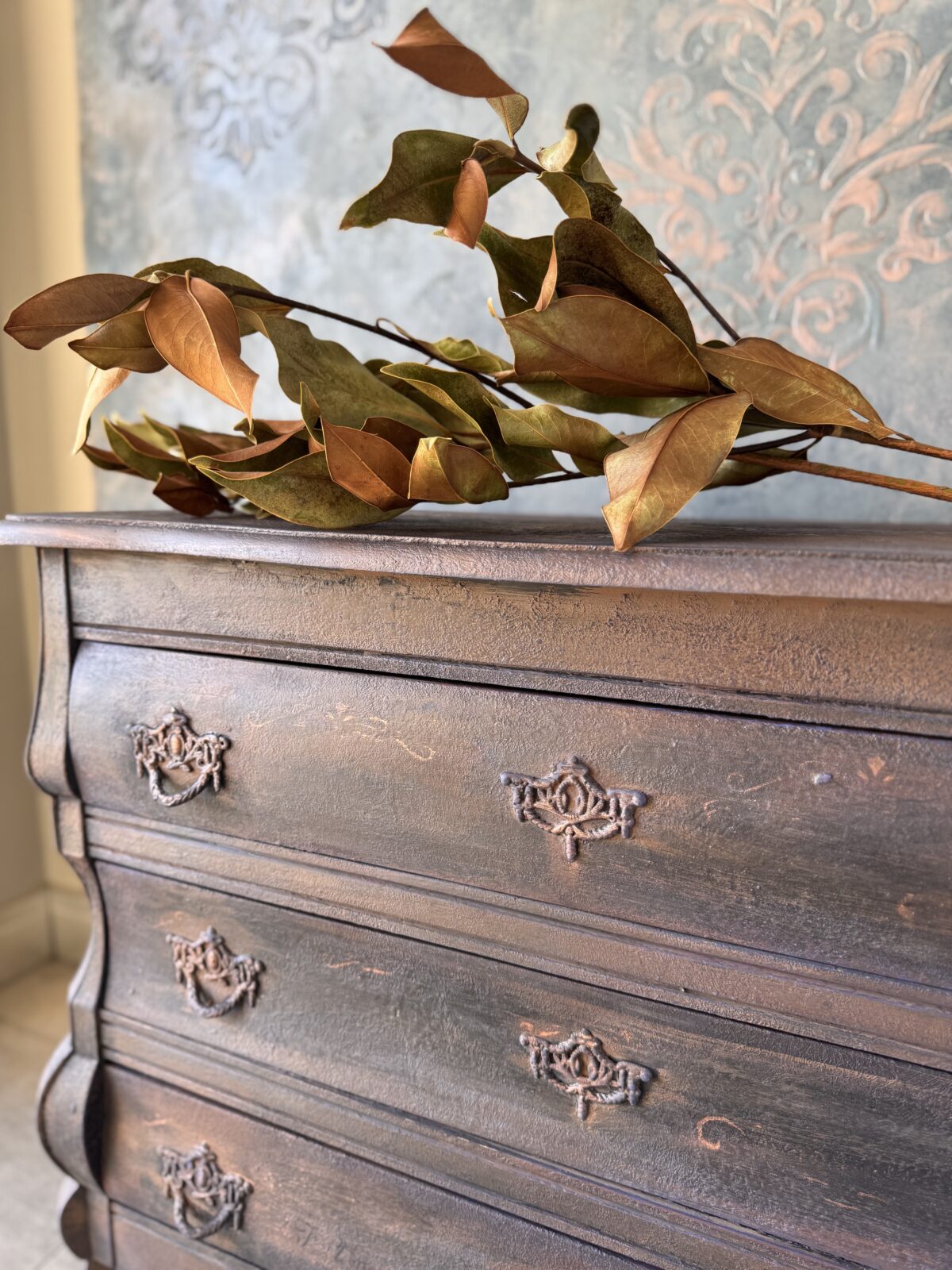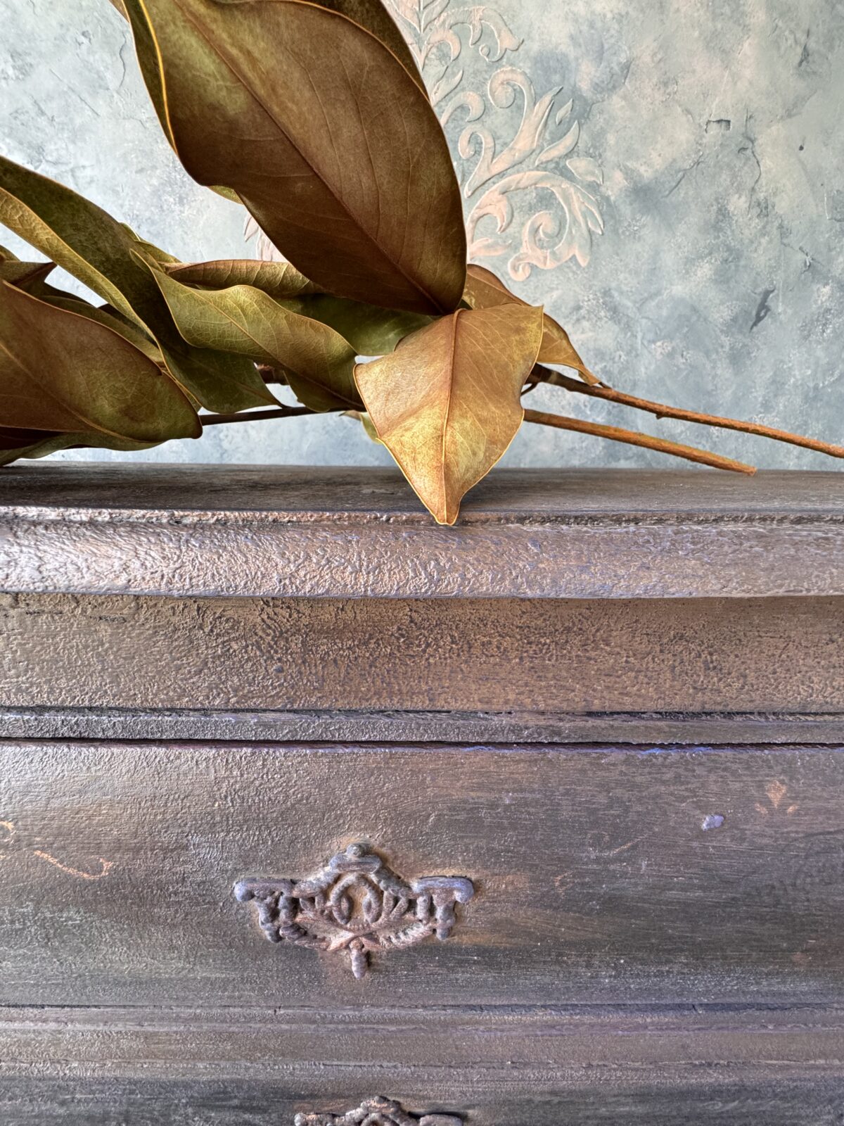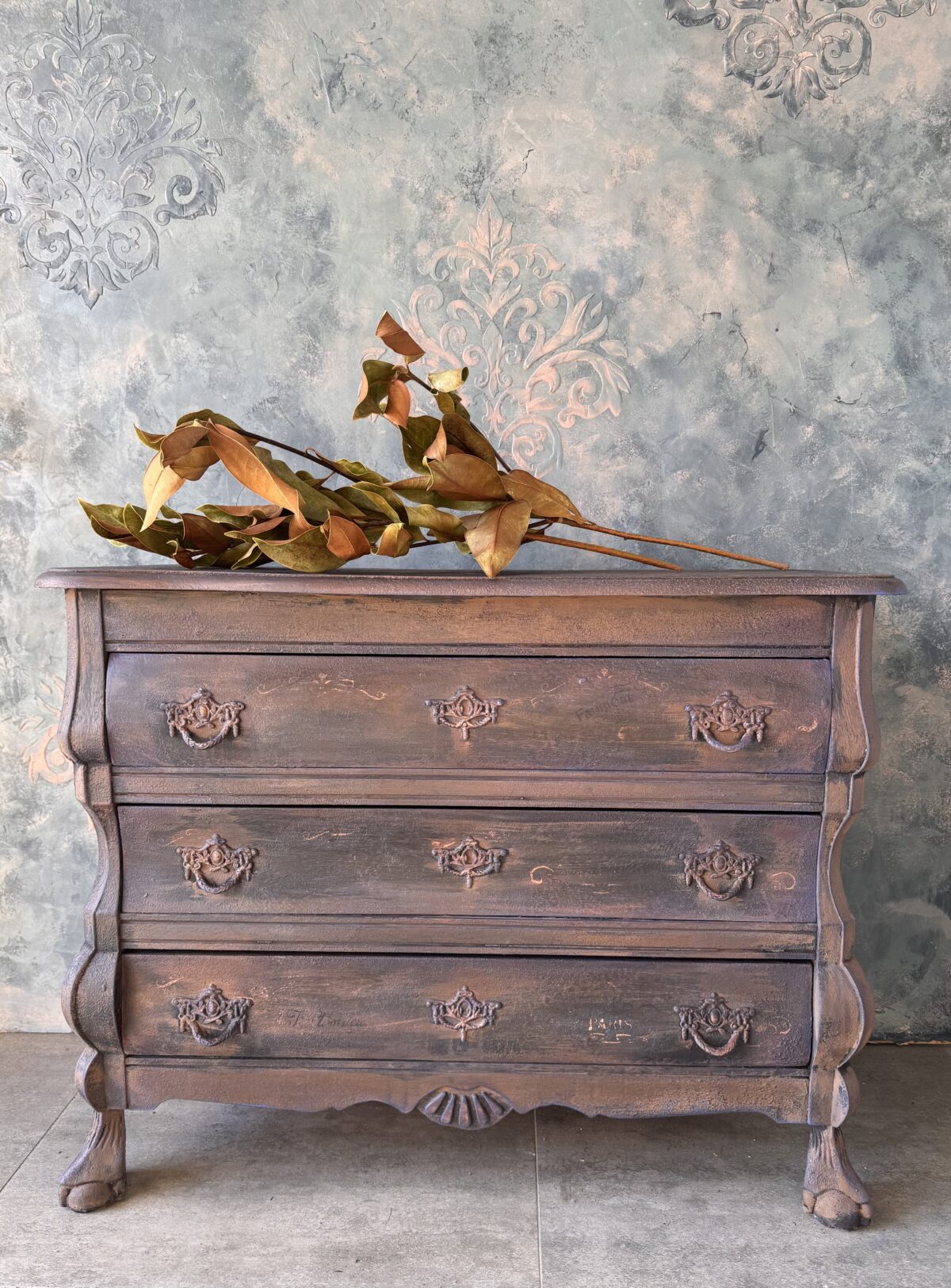 Stylowa komoda pomalowana farbami Annie Sloan. Mebel został wystylizowany woskami dekoracyjnymi, które podkreślają głębię barwy i strukturę powierzchni.