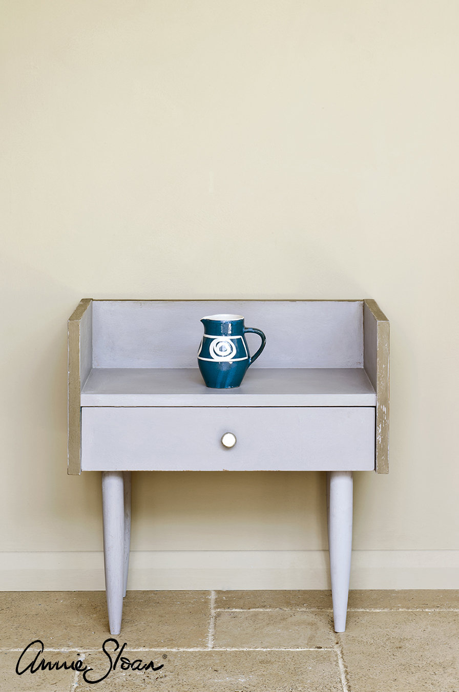Farbę zabezpiecza się woskiem bezbarwnym Clear Annie Sloan (dostępnym na stronie) lub lakierem bezbarwnym do drewna – wodnym lub poliuretanowym (dostępnym na stronie).