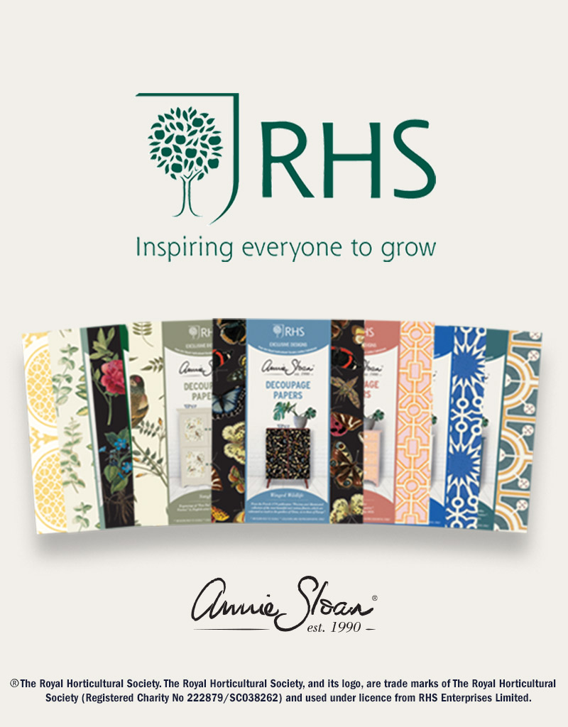 Annie Sloan stworzyła kolekcję papierów do decoupage’u, wykorzystując oryginalne projekty ogrodów i rysunki botaniczne sięgające aż do XVII wieku.