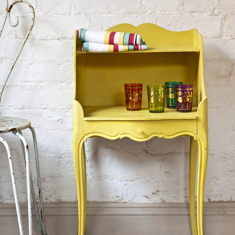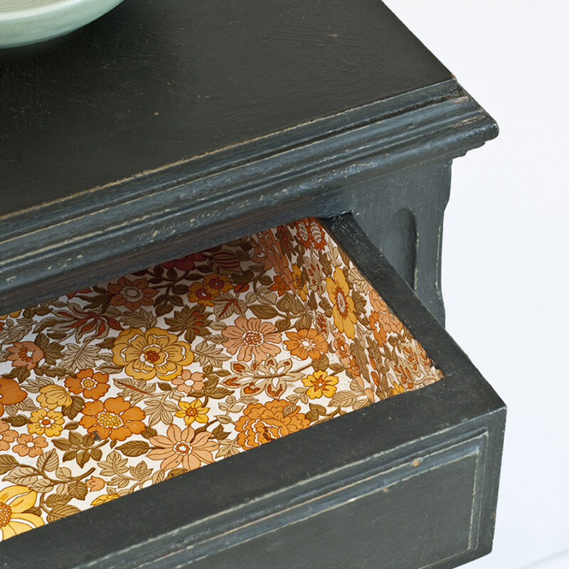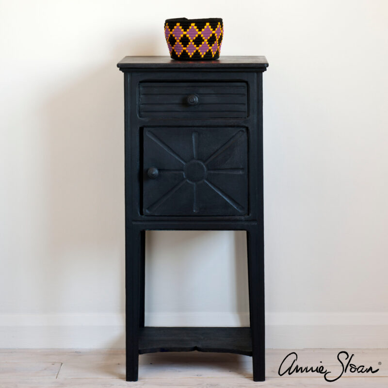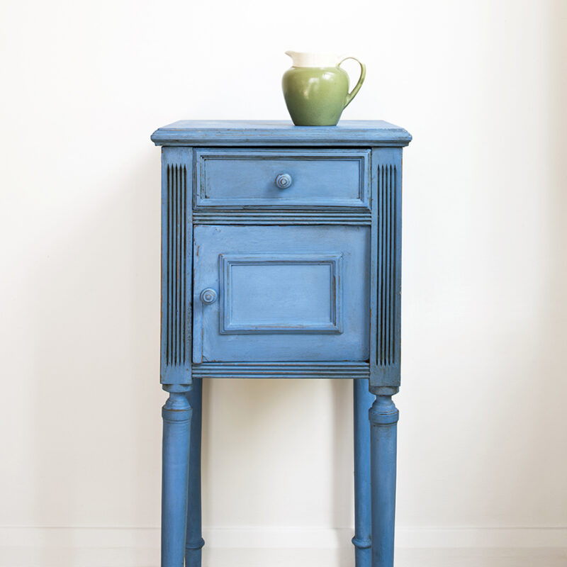 Farbę zabezpiecza się woskiem bezbarwnym Clear Annie Sloan (dostępnym na stronie) lub lakierem bezbarwnym do drewna – wodnym lub poliuretanowym (dostępnym na stronie).
